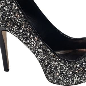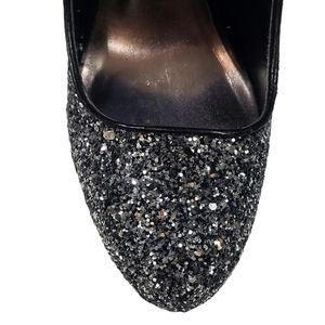 Madden Girl Black Silver Sequin Glitter Platform Heels Sz 9 Evening Party Gothic