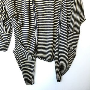 This adorable lightweight cardigan is from Joie. Has a 3/4 dolman style sleeve. Navy and tan stripes. Button front closure with 6 buttons
