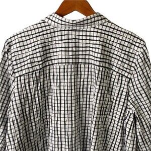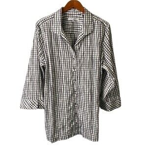 Foxcroft Germaine Crinkle Mini Check Button Up Tunic Shirt 3/4 Sleeve Textured