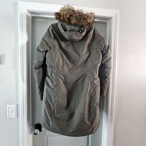 worn less than 10x. unfortunately it's too big for me now. very true to size. I was a size 14 and it fit with a lot of room to spare. practically new and not even a year old. in color New Taupe. there is a very very small slit/pinhole on the sleeve, see pic. size XL. won’t entertain low offers.
