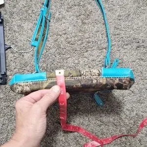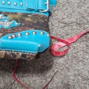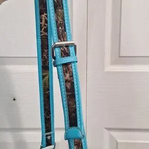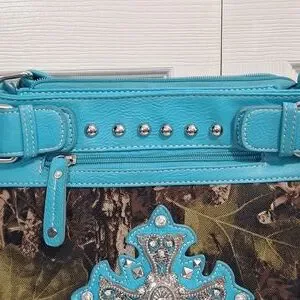 Faux leather and camouflage canvas studded rhinestone crossbody bag - teal/green