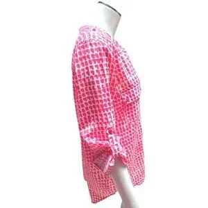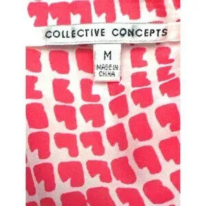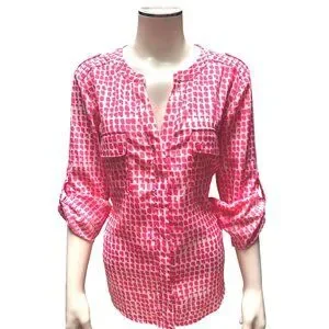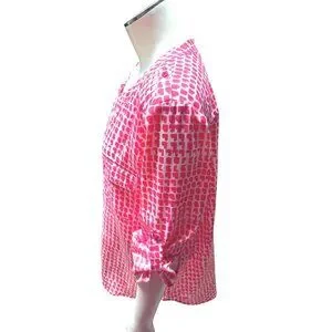 Collective Concepts Medium Pink White Hearts Patterned Blouse Long Sleeve All Po