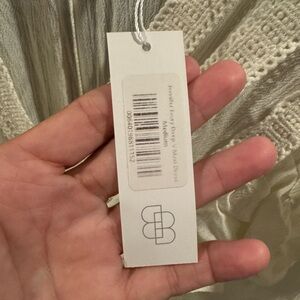 New with tags size M white Baltic born dress. Rayon shell, polyester lining. Slits on bottom.