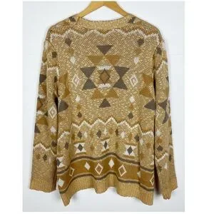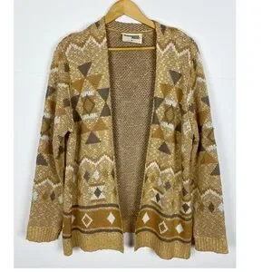 Savanna Jane Cardigan Sweater Size Medium Open Front Aztec Taupe