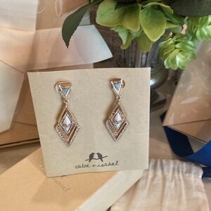 NWOT Chloe and Isabel beautiful earrings from my own private rep collection. These earrings are absolutely stunning and feminine with white and aqua stones surrounded by czs on a two tone drop. Approximate measurements 2.5 inches. Purchased by me and never worn; in pristine condition. Love them; just have too many C&I pieces I don’t reach for. Looks fabulous with everything!