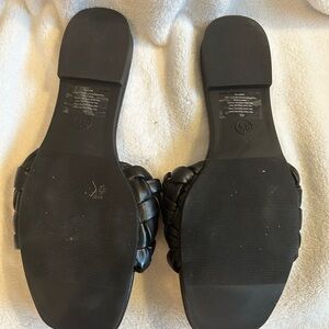 A new day, black quilted sandals size 8 1/2 like new no flaws or damage of any kind come from a smoke-free home can be dressed up or down