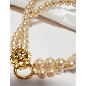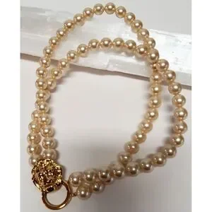VTG KJL Avon Necklace Lion Head Clasp Faux Pearl 80's Kenneth J. Lane Signed