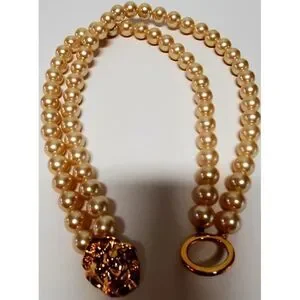 This vintage Kenneth J. Lane for Avon necklace features a beautiful cream-colored faux pearl and a goldtone lion clasp with rhinestone eyes. The necklace is perfect for adding a touch of elegance to any outfit, whether you're dressing up for a special occasion or just looking to make a statement. The choker style and clear main stone color make it a versatile piece that can be worn with a variety of outfits. Made with high-quality materials and attention to detail, this necklace is sure to become a treasured addition to any jewelry collection.