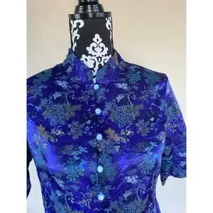 Womens Chinese Style Blouse Cheongsam Short Sleeve Qipao Top Silky Button Down M