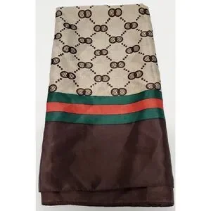 Add a touch of vintage style to your wardrobe with this beautiful scarf. The scarf features a geometric print in brown, red, green, and tan, and is made of high-quality nylon material. It is perfect for adult unisex wear and can be styled in various ways. The scarf is 27 inches square and has a tennis type print that adds an interesting texture to the overall look. It is a great addition to any outfit and will surely make a statement.