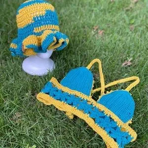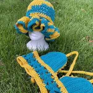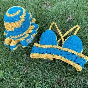 Handcrafted teal and gold flower crop set. Fits small to medium(34b)