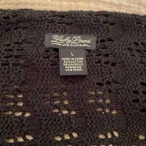 🍀 Vintage Lucky Brand cotton crochet cardigan w/shark bite hem & shawl collar
