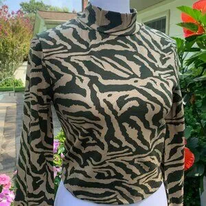 ASOS Noisy May Organic Cotton High Neck Zebra Print Top