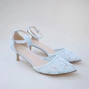 Classic crochet lace pointy toe with low heels with ankle strap adds a romantic, elegant and vintage look to your formal and casual look. The prettiest lace details on this low heel shoes checks off all the right boxes. Perfect for brides, bridal party, bridesmaids, prom, parties, or any special occasion.