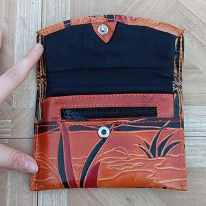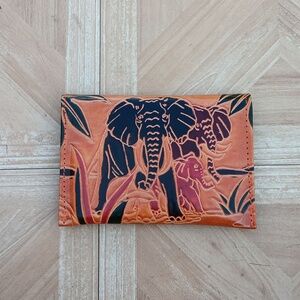 Indian leather embossed hand stitched elephant scene wallet coin purse