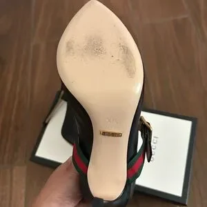Gucci Leather Pumps with Grosgrain Strap, Mary Janes