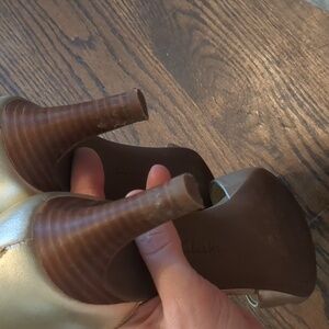 I adore these heels! Incredibly versatile and easy to walk in. Unfortunately, my feet have changed shape and these no longer fit. My loss is your gain!
