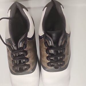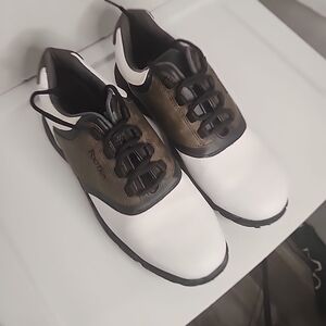 FootJoy GreenJoy Mens Soft Spikes Golf Shoes 45516 White Brown Leather Size 12
