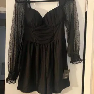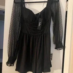 Flirty Fashionista Black Mesh Bustier Long Sleeve Romper Size LARGE (L)