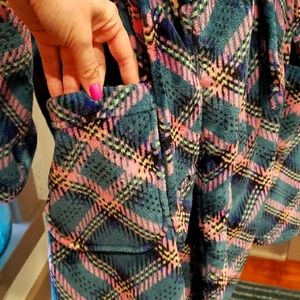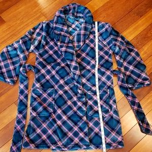 Victoria's Secret Plush Green, Pink Plaid Robe w/ Belt and pockets