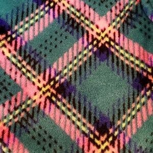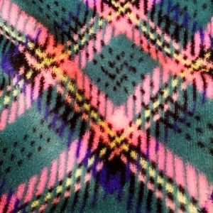 Plush Velour Green, Pink, Yellow & Black Plaid Robe.