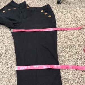 Excellent condition no stains rips or fading. 12” high rise, relaxed slightly tapered cut, front patch pocket, zipper and button closure pants with decorative gold buttons. Organic cotton and elastane.