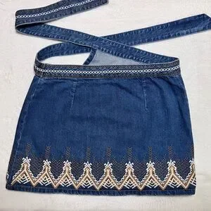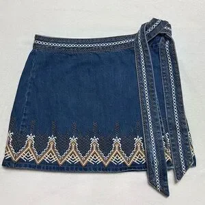 Wrap denim skirt with embroidered design. Free People size 6. Worn only twice.🍁