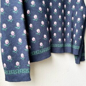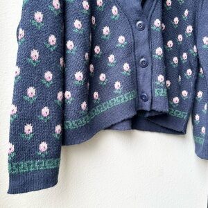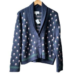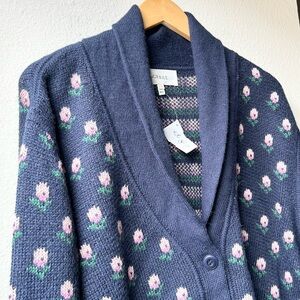 NWOT THE GREAT Navy Blue Bloom Lodge Alpaca & Wool Blend Floral Cardigan Sz S