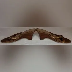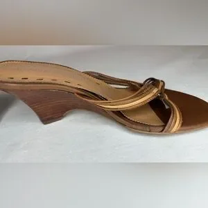 Hillard & Hanson Vintage Y2K Brown Wedge Sandal Leather Upper Made In Brazil 7.5