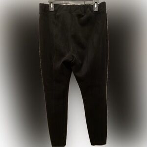 High waisted skinny leg pants that fit like leggings. Soft (almost suede feeling), thick knit center seam on front and back of legs. Perfect pull-on pants for colder weather as it tucks in well with boots. Measures 16” waist from side to side, 12” rise and 28” inseam. Very good condition.