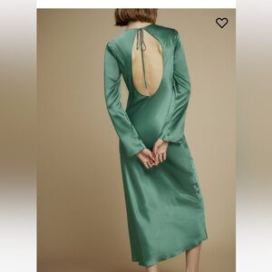 NWT reformation davina green silk long sleeve midi open back dress!