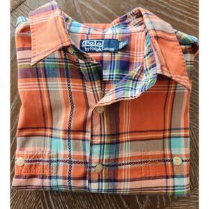 Polo Ralph Lauren 90's/ Y2K Navajo Long Sleeve Fall Button Down Orange size XL. Navy blue stitching and two pockets. 100% Cotton, really nice colors.