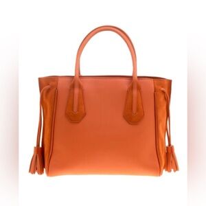 Longchamp Orange Leather and Suede Penelope Fantaisie Tote (Large)