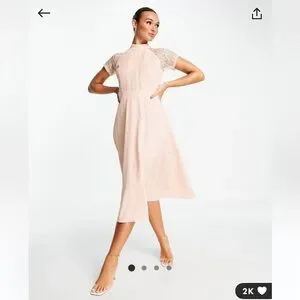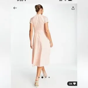 Liquorish lace detail midi dress in pale pink