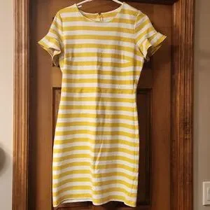 Old Navy short sleeve yellow and white stripe midi dress size medium