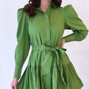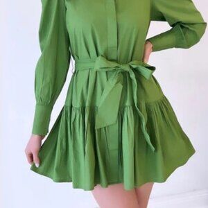 LaRoque Size M Green Button Down Long Sleeve Dress, belt included though not pictured