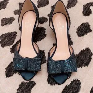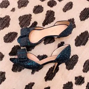 Navy blue glitter pumps with 2 inch heel. Gorgeous shoe for nights out or formal events. Sole shows wear - top side is great condition.