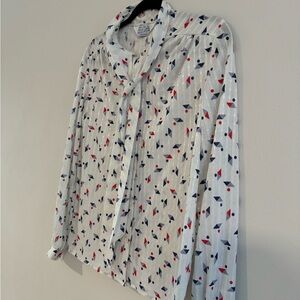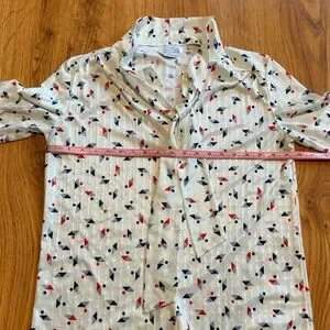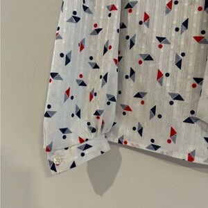 Made in USA. Beautiful vintage blouse. Dress up with skirt and blazer or dress down with denim. Perfect to celebrate July 4th or any Patriotic event. Fits like a women’s modern day size small.