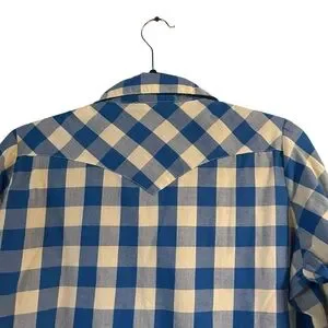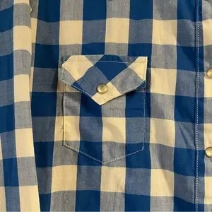 Wrangler ladies wrancher shirts blue and white plaid pearl snap button down L