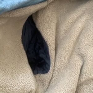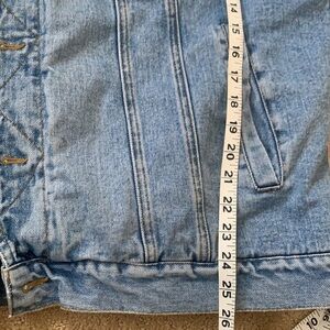 Amazing vintage piece. Detachable sherpa collar, in great used condition. Boxy, oversized cut. Quilted sleeves. Cozy and cool. Awesome light wash.