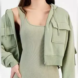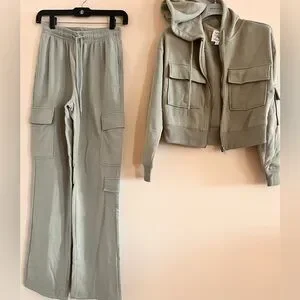 New Junior 2 PC set : high-Rise Wide -Leg cargo Sweatpants and Fleece Cargo hoodie sweatshirt. Color Light Green. Size:XS . New with out tag .