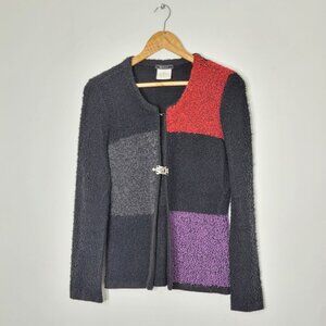 Vintage Orly Wool Blend Color Block Knit Cardigan Sweater Textured Multicolored Hook and Eye Closure #1308