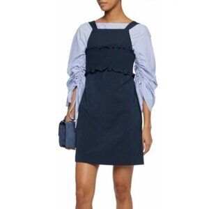 Anthropologie Tibi Ruffle Trimmed Cady Mini Dress Ruched Corset Pinafore Pockets