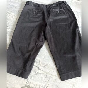 Zipper, slant pockets, back pockets with button knee length 98% cotton 2% spandex