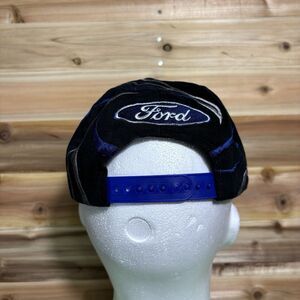 Vintage 90s Ford Racing Splash Swirl Snapback Hat Cap Sport Blue Black Nascar