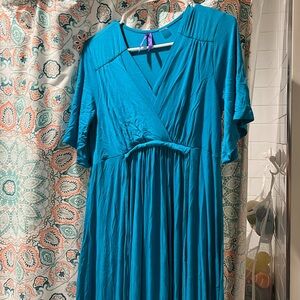 Beautiful maxi dress in a vibrant turquoise color, gently used for only a couple events during and after pregnancy. Super comfortable and lightweight, easy to nurse in, and machine washable. Comes from a smoke-free and feline-friendly home.