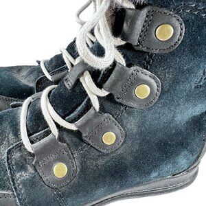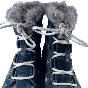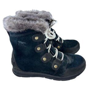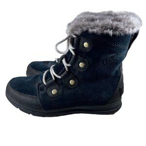 Sorel Explorer Joan Black Suede Womens 8 Waterproof Faux Fur Trimmed Boots