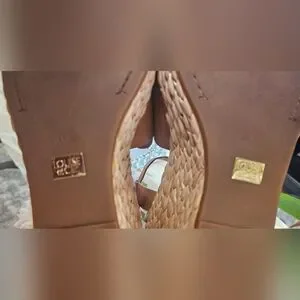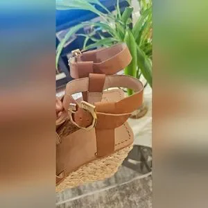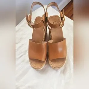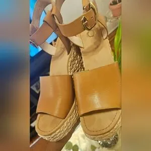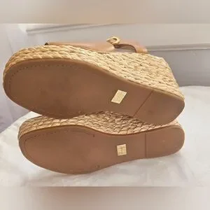 Louise et Cie Paley Leather Braided Straw Wedge Sandals 7.5