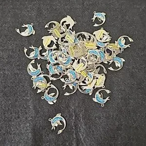 Calling all jewelry makers. 50 silver Dolphin pendants/charms.