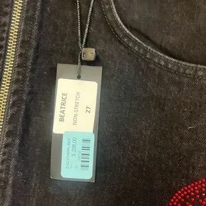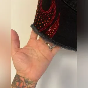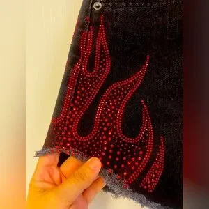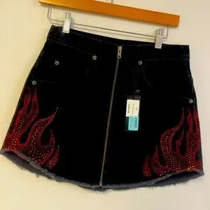 Carmar black denim Beatrice skirt with rhinestone flames Size 27 Goth, Grunge,